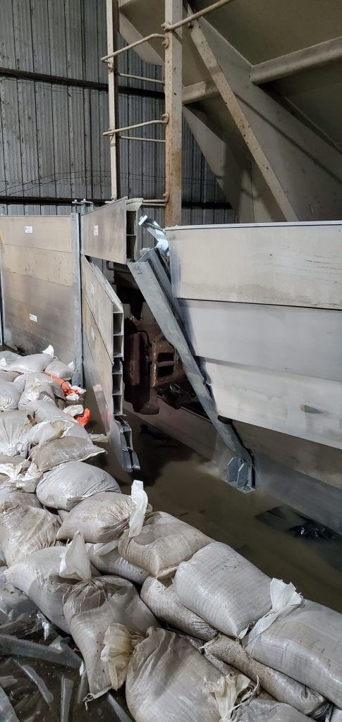 Ein Güterwaggon prallte beim rangieren unter einer Abfüllanlage gegen das aufgebaute Hochwasserschutzsystem ESH/LN mit einer Stauhöhe von 1,5 M.